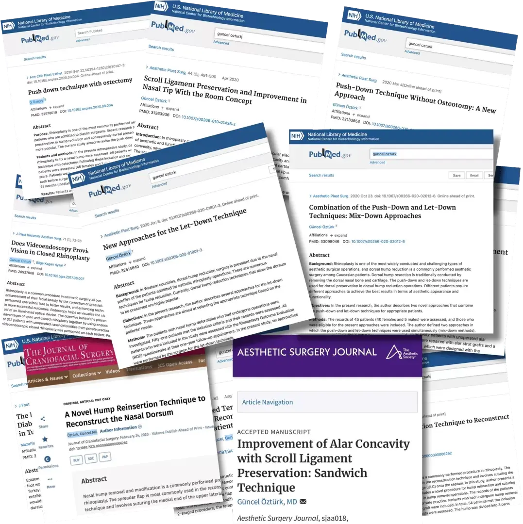 Burun estetiğinde geliştirmiş olduğu teknikler, en prestijli uluslararası tıp dergilerinde yayımlanmıştır